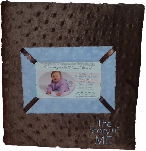Perfect Memory Creations The Story of Me Memory Album with Minky Chocolate Fabric Cover, Blue Frame with Brown Ribbon Review